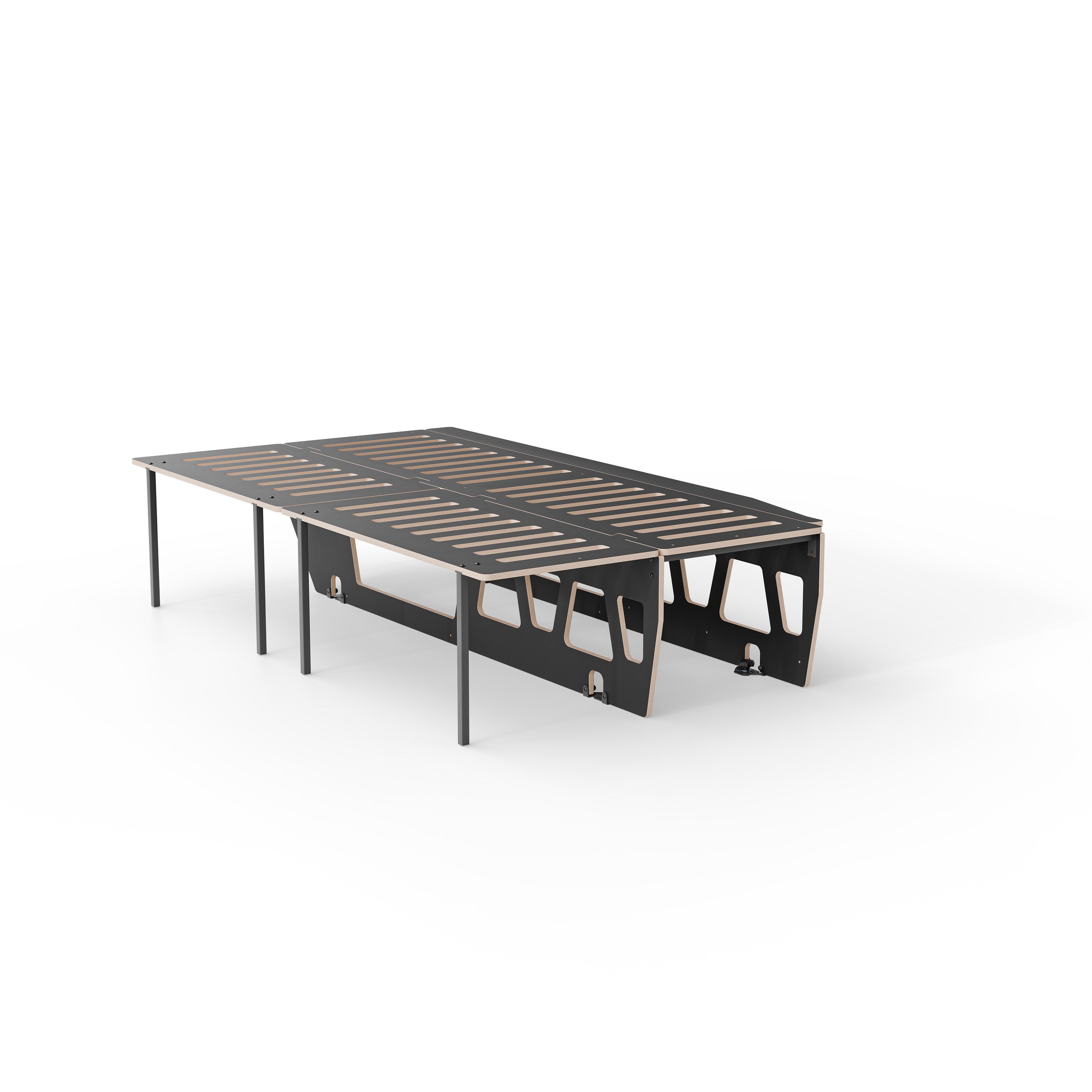 Die zwei Andockplatten werden seitlich am Hauptbett eingehängt und erweitern die Liegefläche in wenigen Sekunden – ideal für alle, die maximale Flexibilität möchten oder viel transportieren: